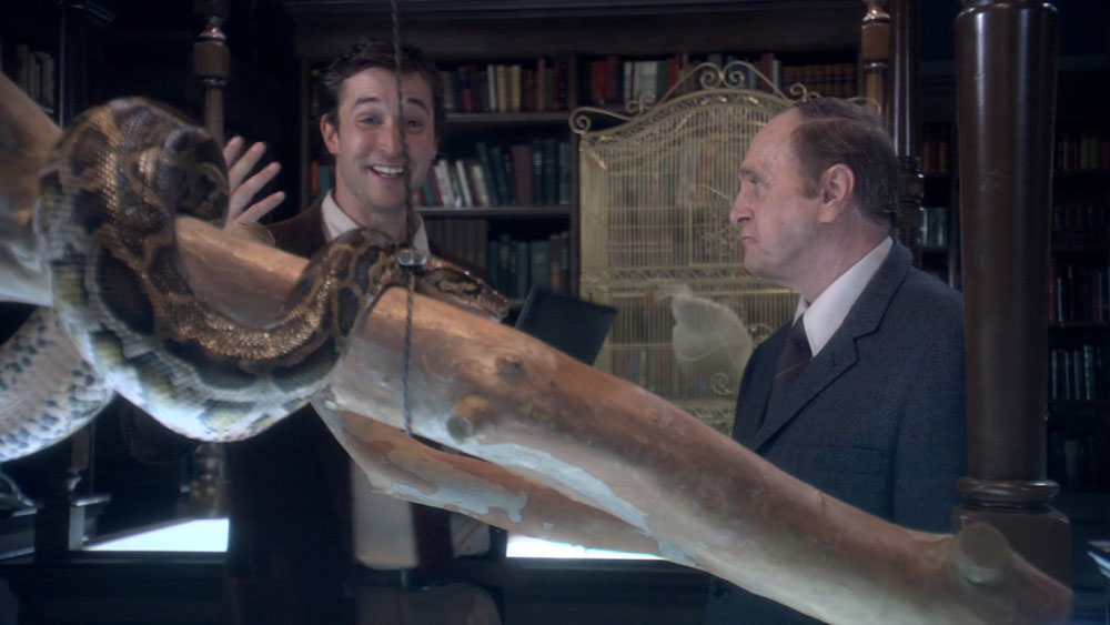Sherlock Holmes solves a mystery involving a venomous snake used to kill a woman. A python is used to act as the venomous snake. |