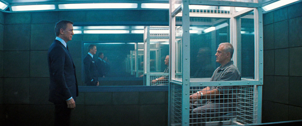 James Bond shoots at his reflection in a space full of mirrors during the opening credits song sequence.