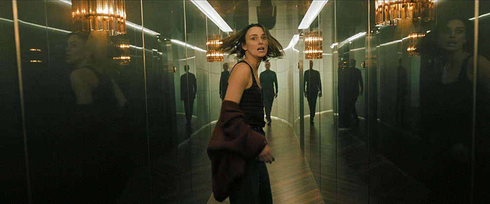 A billionaire's brand new mega-yacht named the Aurora Borealis is full of reflective surfaces, including the main hallway to the cabins that we see throughout the film which is lined with mirrors.