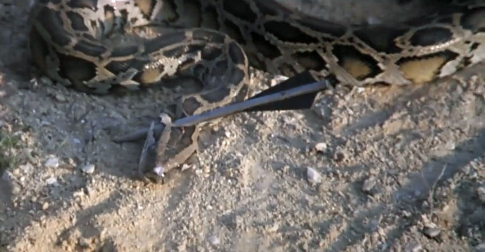 Snakes are on the attack in several scenes in this jungle adventure movie. |