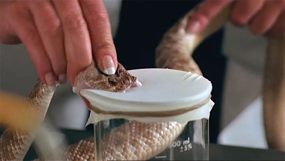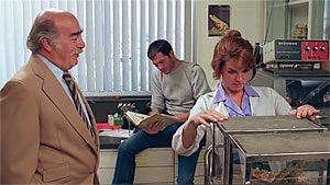 In the rattlesnake scene, David has seen a giant alligator alive in the sewer so he goes to talk to Marisa, the herpetologist and alligator expert. When we first see her, she is in her lab milking a rattlesnake of its venom (because that's what all city herpetologists do every day, right?) She doesn't believe David either, telling him that it's impossible for an alligator to grow so large. But after Ramon eats a sleazy journalist who managed to get some pictures of the gator before he became lunch, everybody sees that the monster alligator is for real. Marisa accompanies David as he searches for Ramon and eventually we see them in bed together. (They probably don't live happily after, though, because movie cops are incapable of any kind of fidelity except to their job and their neighborhood bartender.)