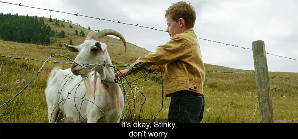 When I first saw the scene, I thought it was badly done: the snake is entirely CGI and looks like a cartoon monster; the father shot the snake in T. S.'s direction, instead of walking up to T. S. and shooting away from him; and of course there was no real reason to shoot the snake when it was so far from the boy that he could have just backed away. But the more I think about it, the more it works just fine. We see the snake through T. S.'s eyes. To him it appears as a huge monster threatening his life so he freezes not knowing what to do, thinking he's in more danger than he really is. That's in character for him. And the father shoots the snake just like the old west movie cowboys he idolizes always do. And maybe he was worried that the snake would bite the goat so he couldn't just leave it there alive. I still think he should not have shot in the direction of T.S., but maybe he did that so the boy would see what he was doing and not make any sudden moves.
