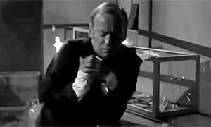 The detective wanders out on the moors at night and plays the flute then meets a beautiful young woman. She tells him she was attractive to the music. He plays the flute again and a snake appears, so he raises his gun to shoot it, but she stops him, telling him it has a right to live. This looks like a romantic scene to the detective so he tells her he wants to see her again tells him he will see her again if he plays the flute and then she leaves. Later, the detective finds a huge woman-sized pile of shed snake skin, which he picks up. (This part makes no sense. Women don't shed that way. They'd like to, with all their expensive exfoliants and dermabrasions, but they don't. If she changes into a snake, she would shed as a snake.) After some voodoo doll nonsense with the old midwife who convinces him that Atheris is the snake woman, the detective goes back out to the moors again and sees a cobra. This time he shoots the cobra, and we see Atheris' dead body fading in where I assume the cobra was. (We don't even see the dead cobra.) But this finally gives us some evidence that she does change into a snake and back. That was never too apparent. Before that, we saw her appear and disappear quickly, probably from and back into a snake. But we also saw other snakes while she was in human form. I had to assume that there were snakes that were offspring of the snakes that escaped 20 years earlier, even though there's no way tropical snakes could survive in the wild in Northumberland. And the question remains, who was biting the villagers, her or the other snakes? We'll never know for sure, even though the advertisement poster claims she turns into a deadly reptile at will.