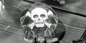 A millionaire villain with a silly alias (The Tortoise) lives in a castle in Italy with tortoises roaming around it, including some with a skull and crossbones figure painted on their shells. He sends tortoises with his messages as a calling card of sorts. The tortoises are so non-threatening that he has to paint the skulls on them to give them a little gravity. |