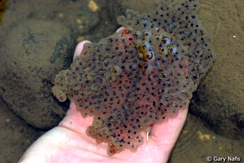 Adult and egg mass in creek, Marin County © Terry Goyan |