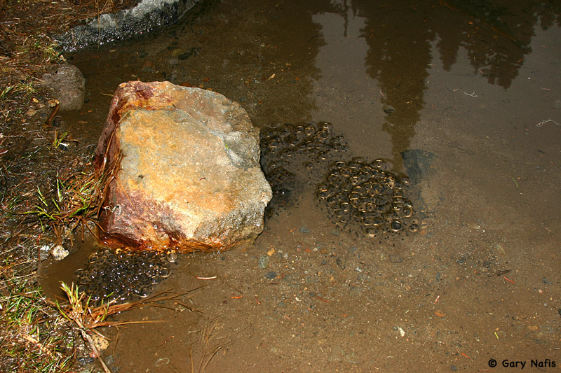 Snow-melt pool in subalpine meadow with clusters of recently-laid eggs (shown above) 5,600 ft., June, Pierce County, Washington |