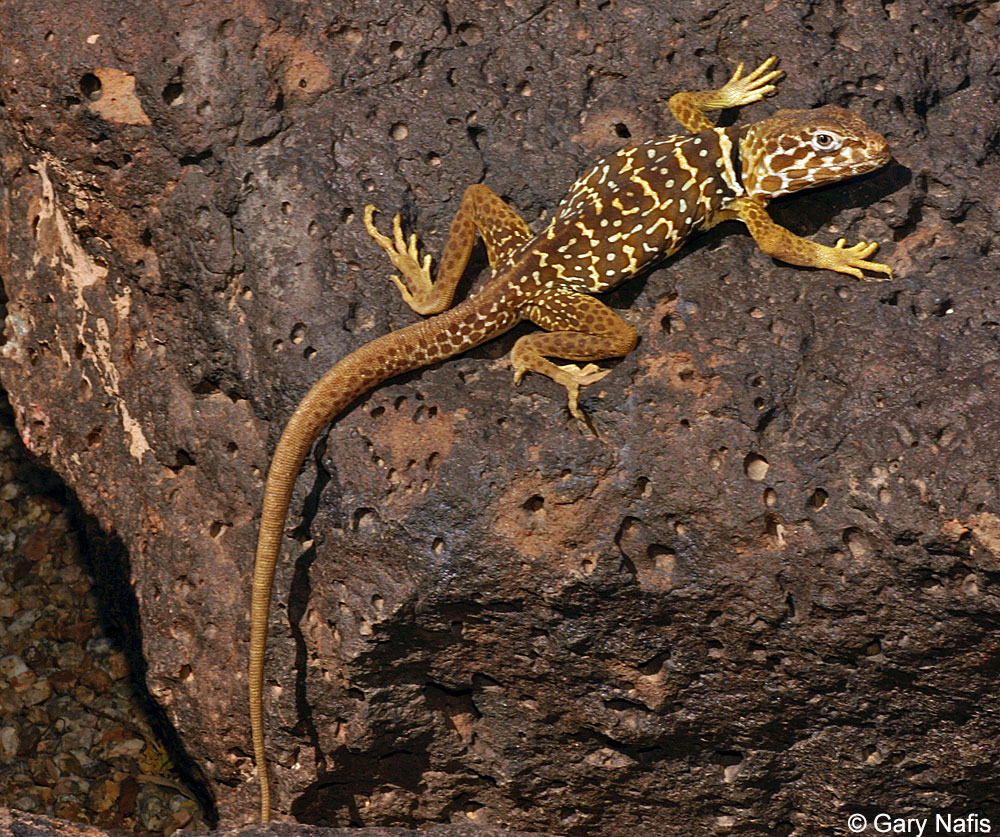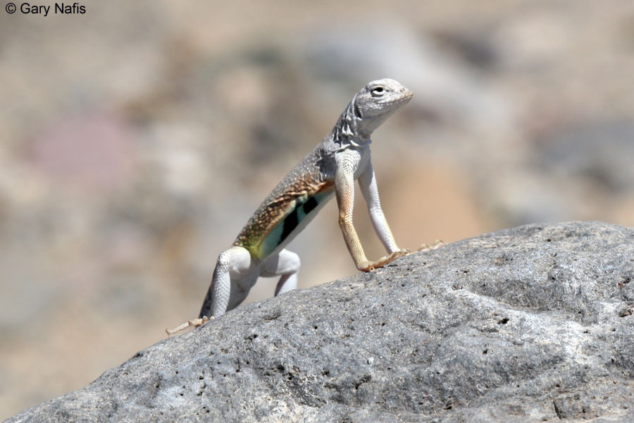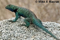 A medium-sized greenish lizard, found on large rocks in the peninsular range, from the Baja California Border to near Palm Springs. Usually found near creeks and oases. Diurnal.