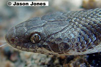 A long slender, fast-moving snake with a large head and eyes and large rough scales.