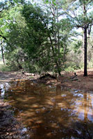 This is a 12 second recording of the advertisement call of a single Houston Toad (shown to the right) recorded at night in Bastrop County, Texas, on the edge of a temporary pool shown below. The call of a Narrow-mouthed toad can be heard at the end of the call. |