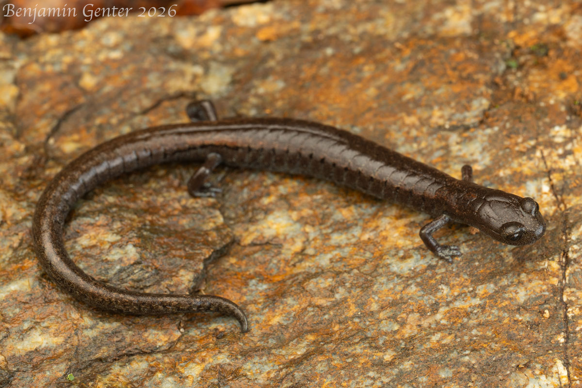 There are four toes on the front and hind feet, which is also typical of Slender Salamanders.