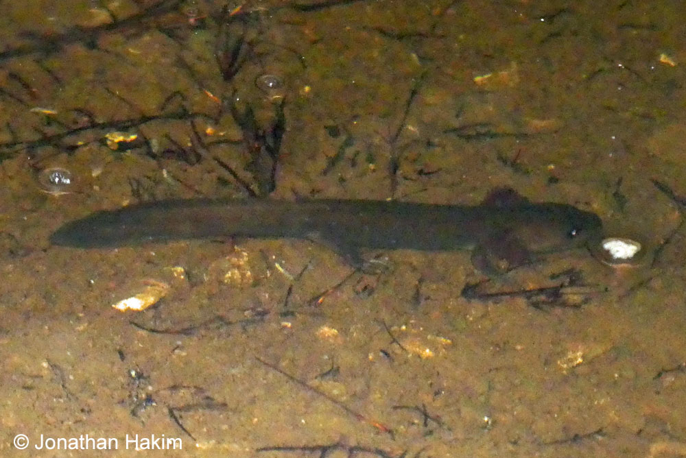 Kamil Szepanski photographed these larvae in the creek just outside the cave in Santa Cruz where a population of patternless gray paedomorphs have been found, and he thinks these may have drifted out of the cave since they were similarly gray and patternless.