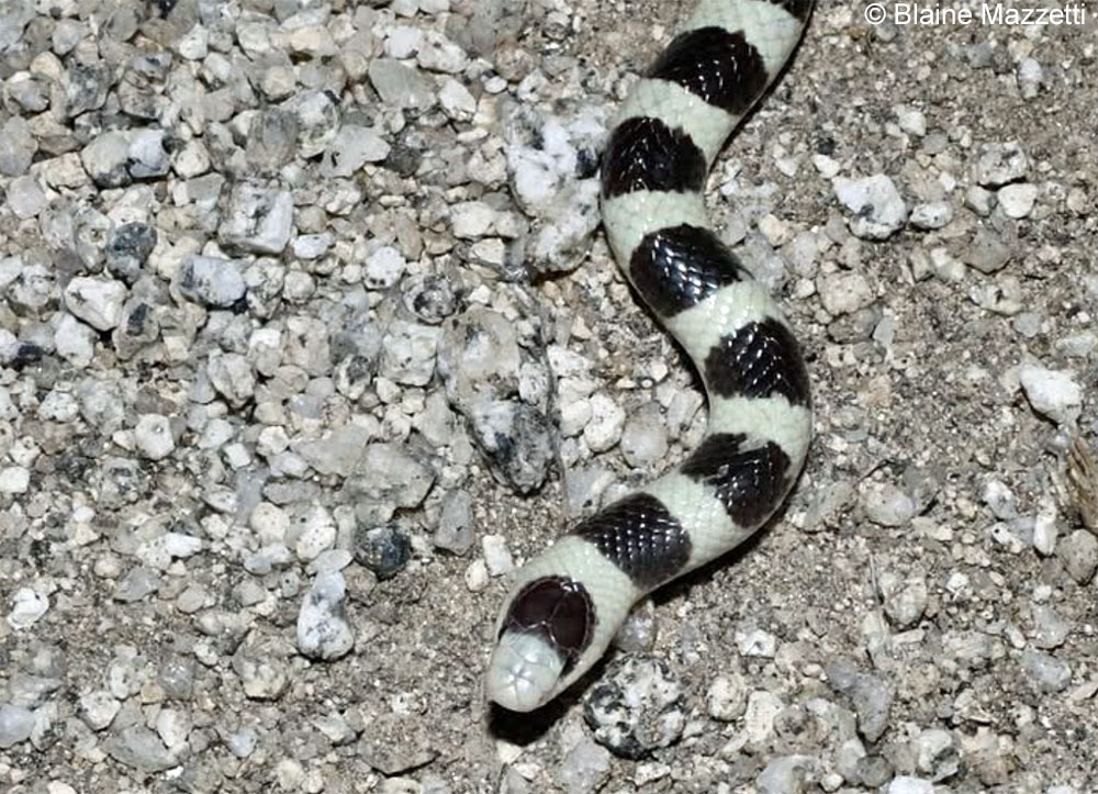 Chionactis occipitalis annulata- Shovel-nosed ground snake (Klauber 1932) Sonora occipitalis - Desert Burrowing Snake (Rhinostoma occipitale; Lamprosoma annulatum; Lamprosoma occipitale; Chionactis occipitalis; Chionactis occipitalis annulatus. Desert Snake; Mohave Ringed Snake) (Grinnell and Camp 1917)
