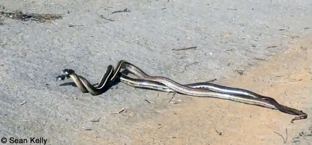 This picture shows what appear to be two males in combat in May in San Diego County. © Sean Kelly. (It's from a YouTube video which has been removed.) |