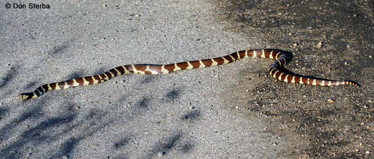 Lampropeltis boylii - Boyle King Snake (Ophibolus Boylii; Coronella balteata; Ophibolus getulus boylii, part; Coronella getula, part; Coronella boylii. Boyle Milk Snake; California King Snake, part; California Milk Snake, part; Banded Milk Snake) (Grinnell and Camp 1917)