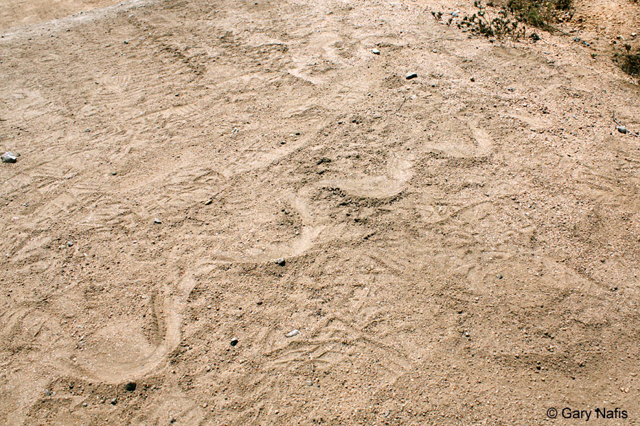 California Kingsnake tracks on a dirt road in San Diego County. |