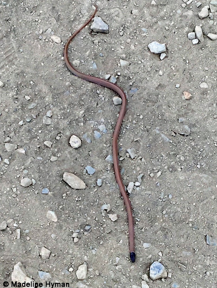 A tiny California Black-headed Snake crawls around in San Diego County.